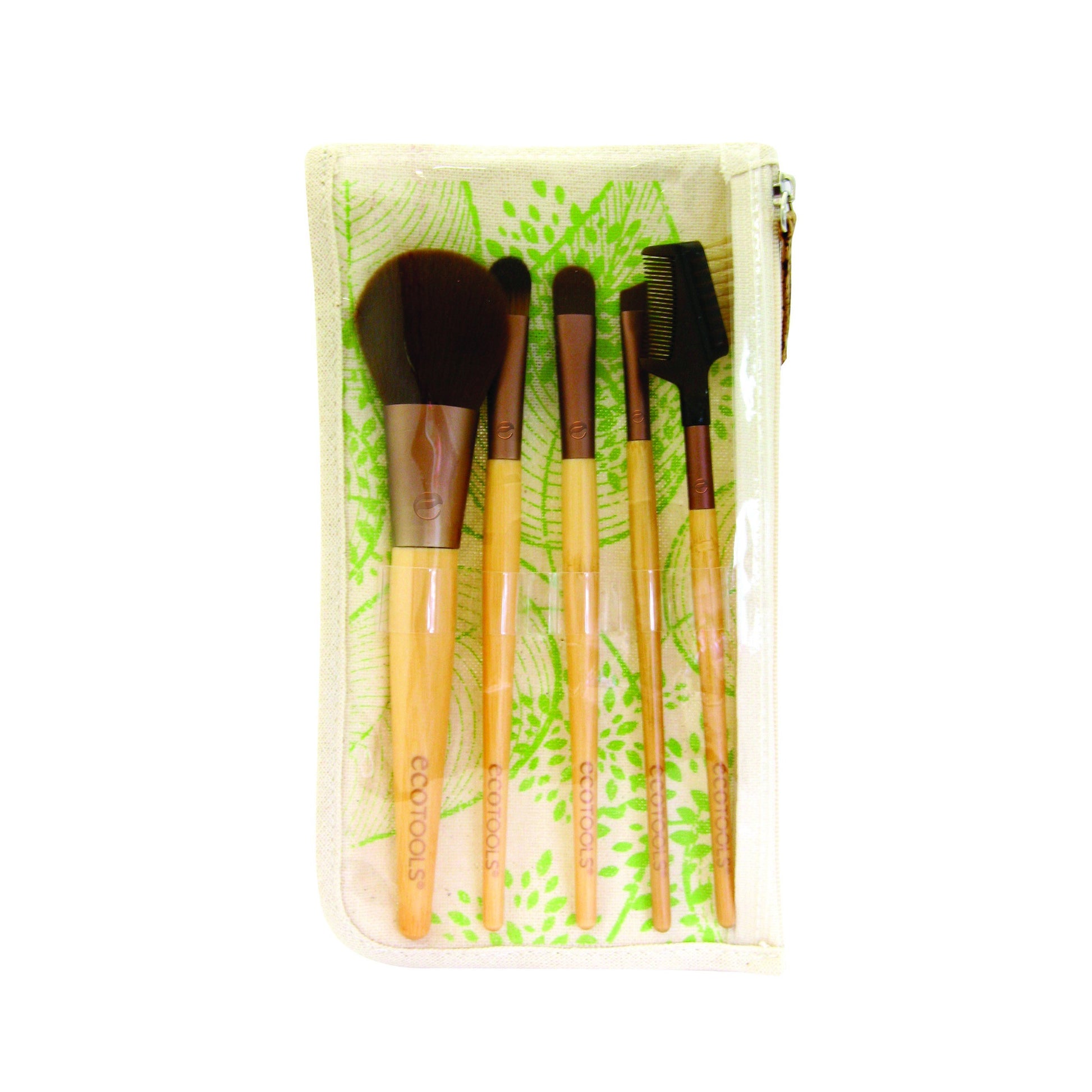 EcoTools earth-friendly - EcoTools 6pc Brush Set makes it easy to create your favourite makeup looks. It features five individual brushes and a pouch for easy access and carriage. Each brush is crafted for a specific purpose and effect, allowing you to apply makeup with professional results all the time. This set includes: Concealer Brush, Blush Brush, Eye Shading Brush, Angled Eyeliner Brush, Lash & Brow Groomer, One Pouch
